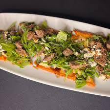 This Steakhouse Flatbread has a thick crust. Seasons 52 has a better Flatbread.