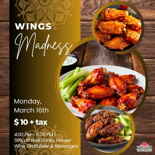 Wing Madness is our favorite. Various types of wings, salads, & veggies. Enjoyed this Madness & had an enjoyable evening with neighbor, Nancy.
